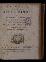Raccolta delle opere minori di Ludovico Antonio Muratori bibliotecario del serenissimo signor Duca di Modena. Tomo 13