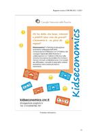 RT 11; “Kidseconomics®" is the educational activity developed by CNR to introduce the basic concepts of economics in primary and lower secondary school education. In the first 5 years of activity it has reached about 6,000 students. Starting from the school year 2019/2020, the didactic proposal also includes laboratories, workshops and school/work alternation projects designed to meet the curiosity and skills of students of higher school grades. The contents therefore present a growing level of in-depth analysis, but the proposed methods and involvement remain those of informal teaching.