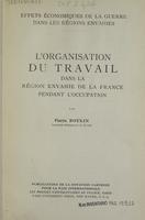 L'organisation du travail dans la région envahie de la France pendant l'occupation : effets économiques de la guerre dans les régions envahies