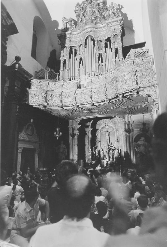 In alto l'organista Daniel Chorzempa e il trombettista Robert Bodenroeder ricevono gli applausi dal pubblico sottostante