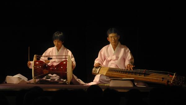 Musicisti dell'ensemble Jeon Ga Ak Hoe durante il concerto "Musica e danza dalla Corea"